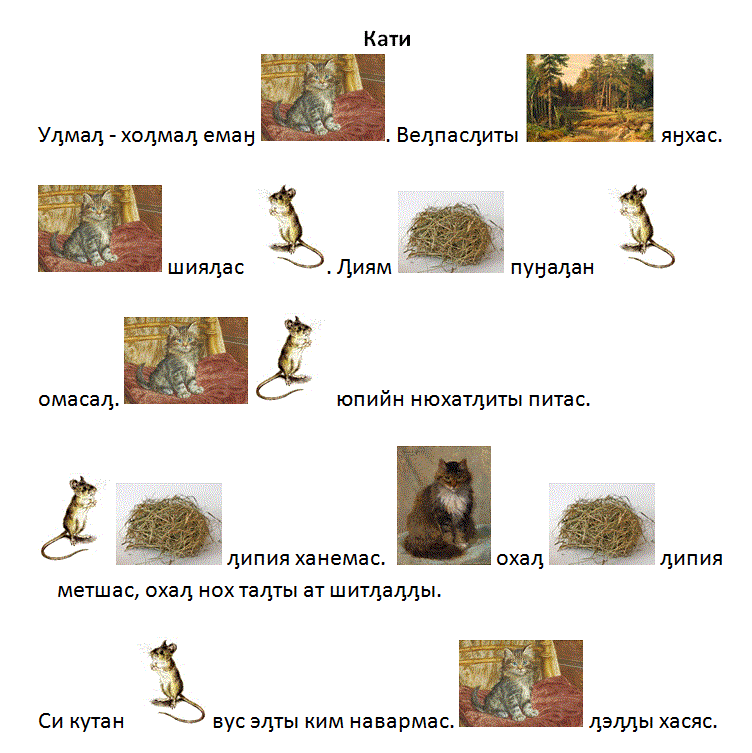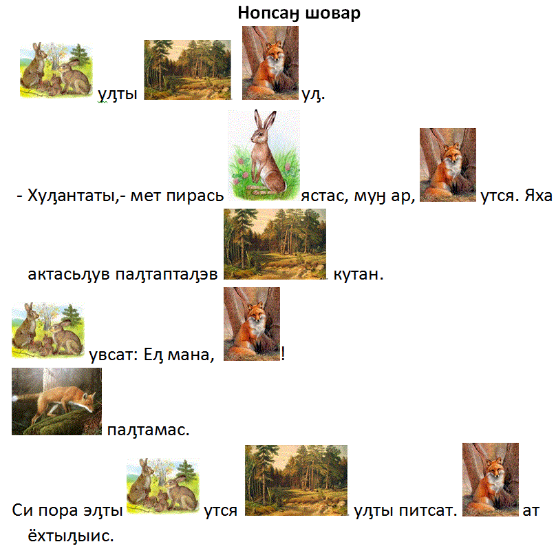 Ястаты: 1. Муя пешие ёлта ант ёхалта? (скажи,почему не догнать олененка?) 2. Ястаты, пешие хорасл муй хорпи? (Скажи, какой олененок?)